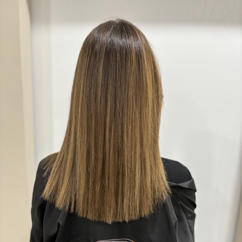 Alisado natural sin químicos agresivos, con brillo, suavidad y control de encrespamiento.